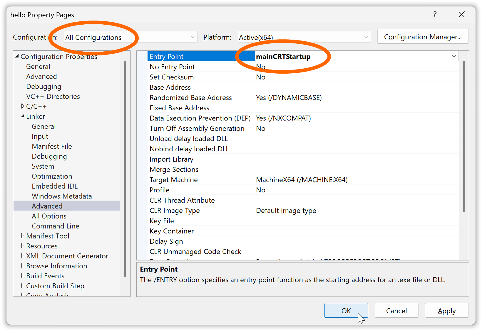 Again, when/if you do this, unless you want to have different subsystems for “Debug” and “Release” make sure that you make this change for “All configurations”.